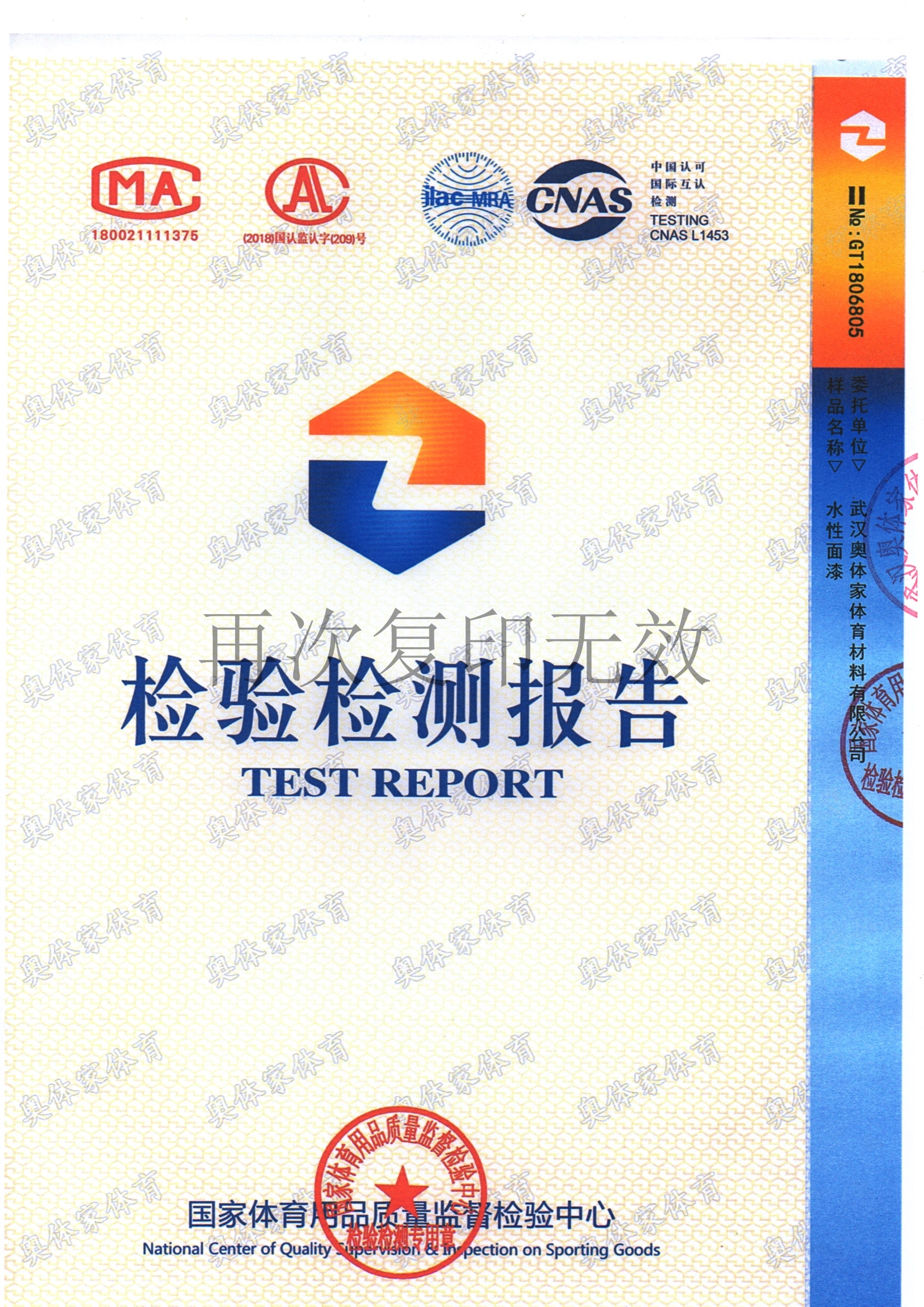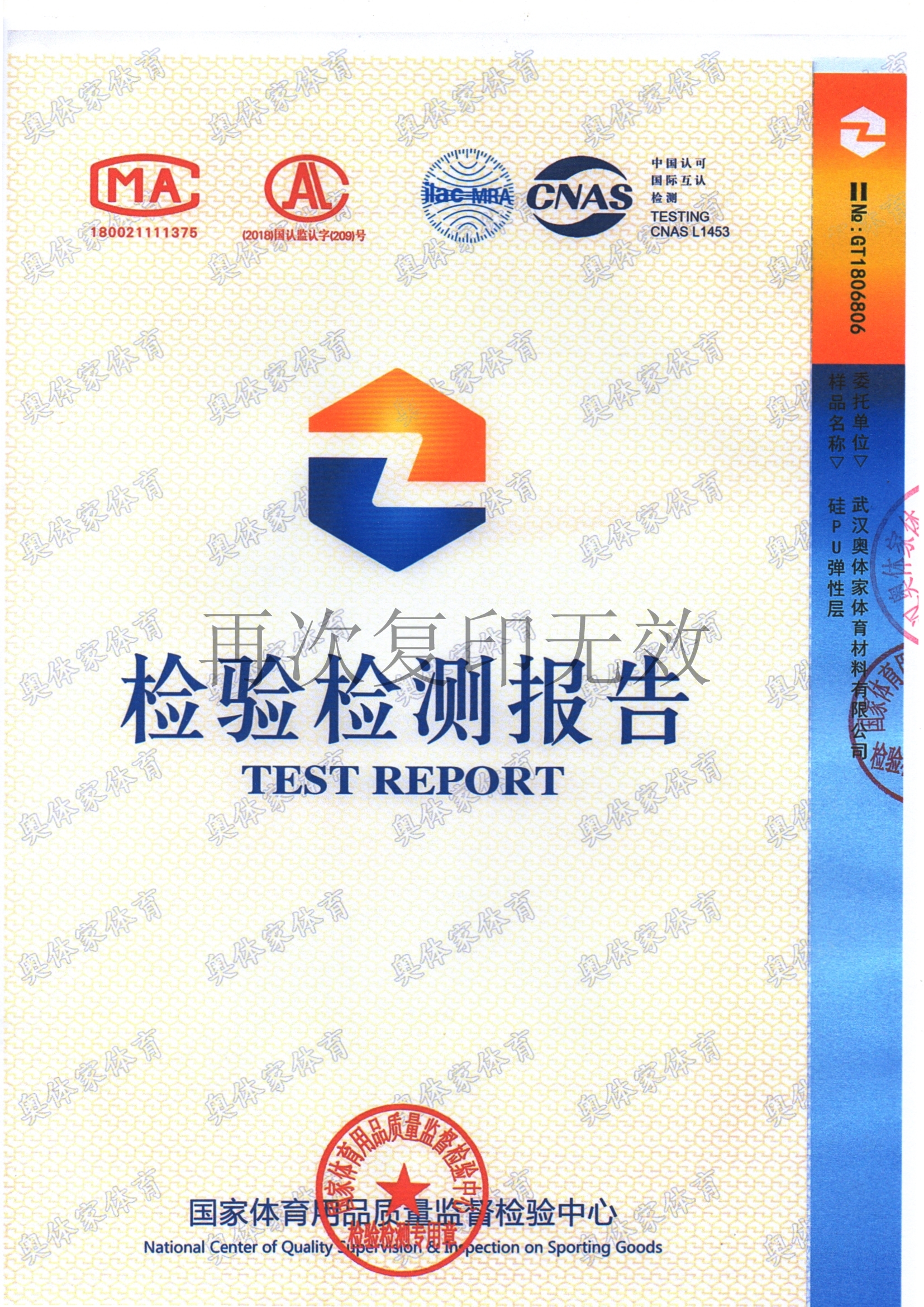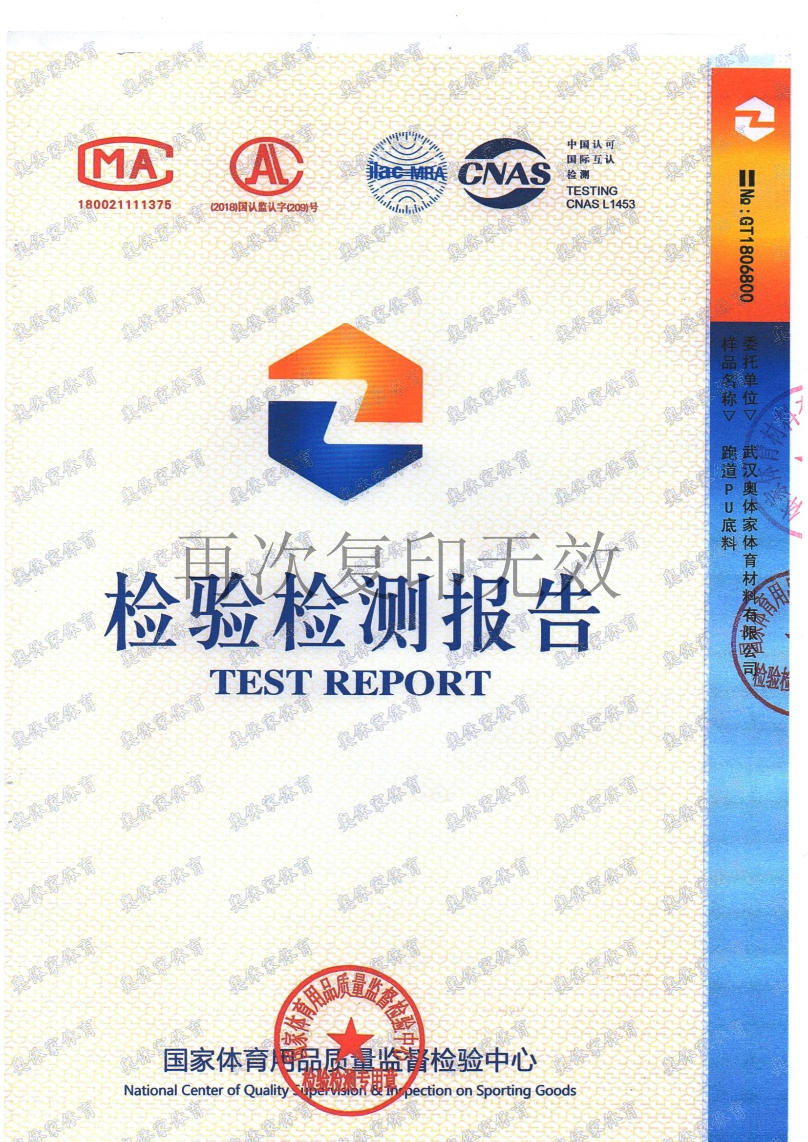 j9国际站官网入口新国标全塑型自结纹塑胶跑道检测报告